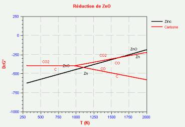 Tracé du diagramme d’Ellingham pour la réduction de l’oxyde de zinc par le carbone.