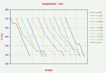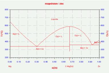 Tracé du diagramme binaire magnésium/zinc et des courbes de refroidissement correspondantes.