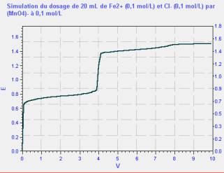 Dosage rédox du fer(II) par le permanganate : courbe E = f(V).