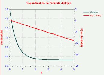 Etude cinétique d’une saponification : tracé de la conductivité en fonction du temps et recherche de l’ordre de la réaction.